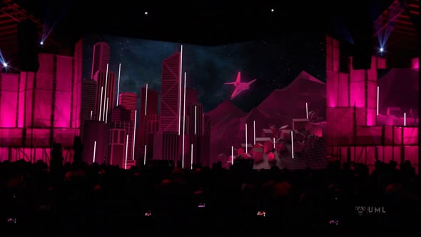 Launch-Event der Marke "Magenta" in der Marx Halle in Wien vor 3000 geladenen Gästen. Videobespielung der 50x9m Bühne.